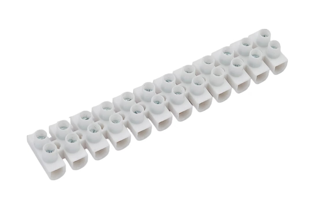 Зажим предназначен для винтового соединения проводников, защищая провод от повреждения и исключая возможность замыкания на корпус электроустановки.Изоляционный каркас изготовлен из белого негорючего полистирола. На DIN-рейку нет Материал корпуса: полистирол Сечение провода: 1-2.5 мм² Min сечение провода: 1 мм² Max сечение провода: 2.5 мм² Количество пар контактов: 12 шт Номинальный ток: 3 А Наличие изоляции: да Длина: 92 мм Высота:11 мм. Ширина: 16 мм