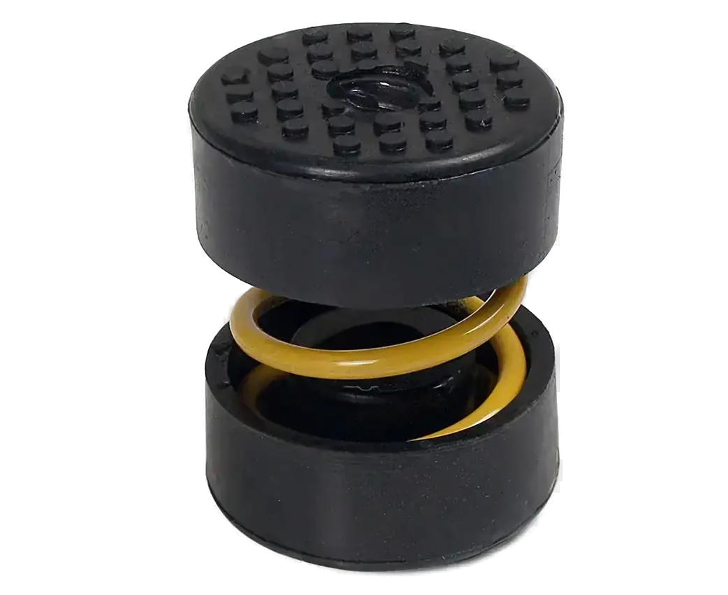 Стальные виброизоляторы представляют собой два основания с резиновыми или пробковыми накладками, между которыми размещена пружина.